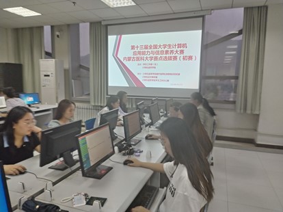 为进一步提高我校学生运用信息技术解决实际问题的基本技能与综合素质,培养学生的信息思维与数字思维,5月29日,由学校学生工作部(处)与计算机信息学院联合主办的第十三届全国大学生计算机应用能力与信息素养大赛内蒙古医科大学赛点选拔赛(初赛)在金山校区图书馆计算机实验室顺利举办。