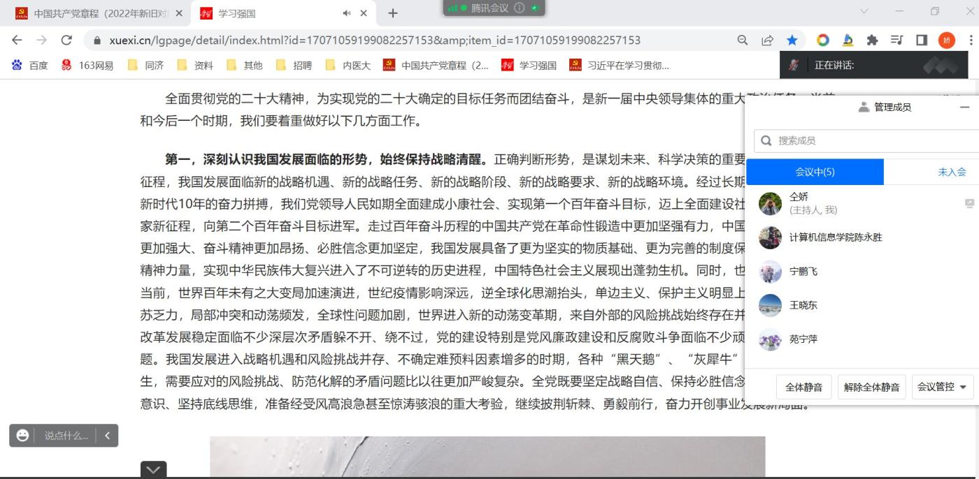 按照学校党委下发的《关于开好内蒙古医科大学二级党组织领导班子2022年度民主生活会的通知》有关要求和总支学习计划,集中学习了习近平总书记在党的二十届一中全会上的重要讲话精神、习近平总书记在参加党的二十大广西代表团讨论时的重要讲话精神、深刻领悟“两个确立”的决定性意义、《中国共产党章程》和《中国共产党内蒙古自治区第十一届委员会第四次全体会议公报》。