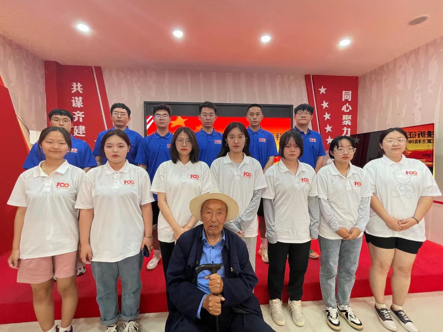 图为与老党员合影