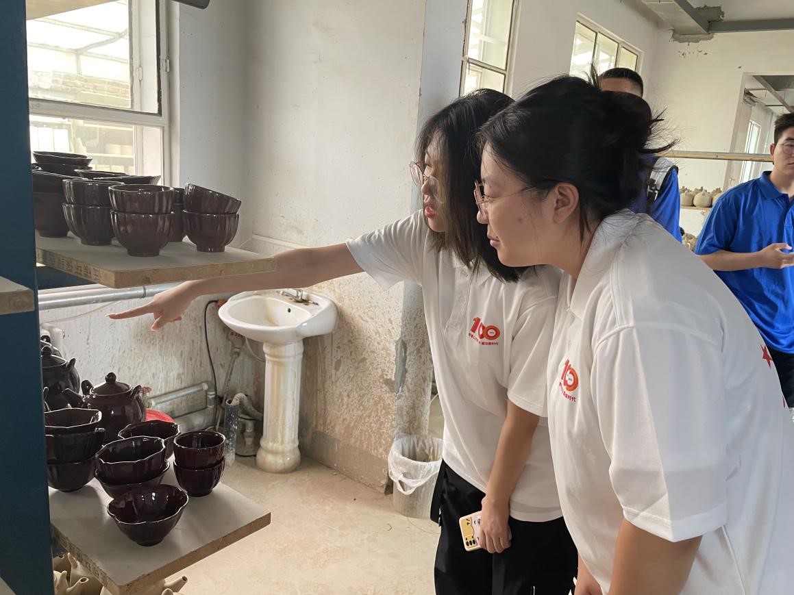 图为参观清水河陶瓷作品
