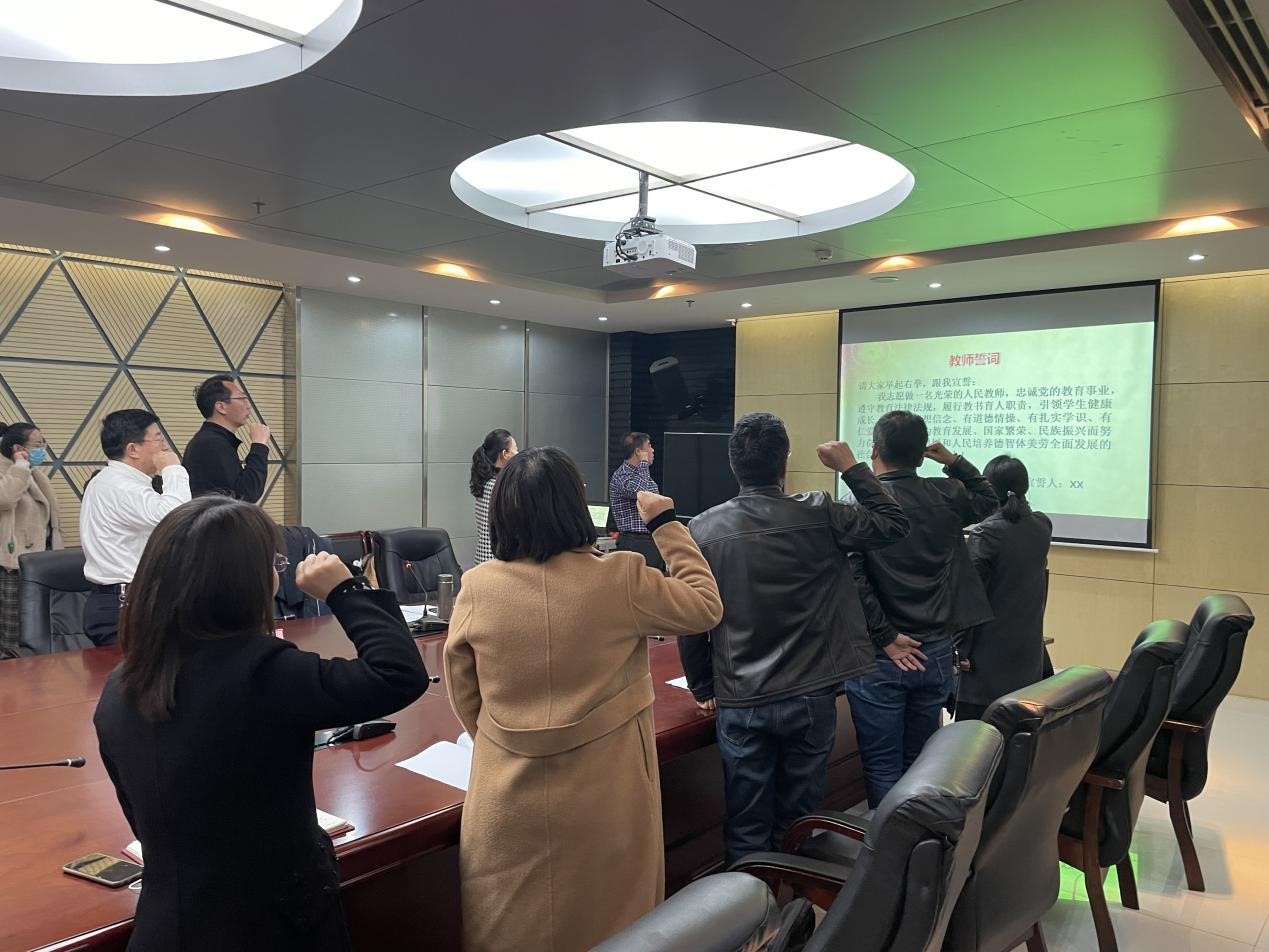 学院副院长李宗学带领参会全体教师做“教师誓词”宣誓。