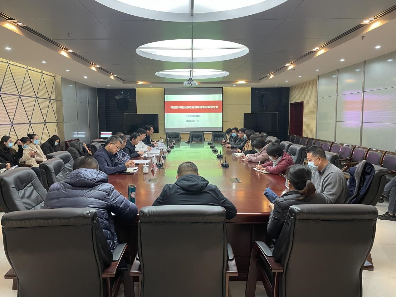 11月17日上午,学院在交流中心2号会议室召开了全院师德师风建设推进会暨师德警示教育大会。学院领导班子成员,全体教师参加了此次会议。会议由学院党总支副书记、副院长宁鹏飞主持。