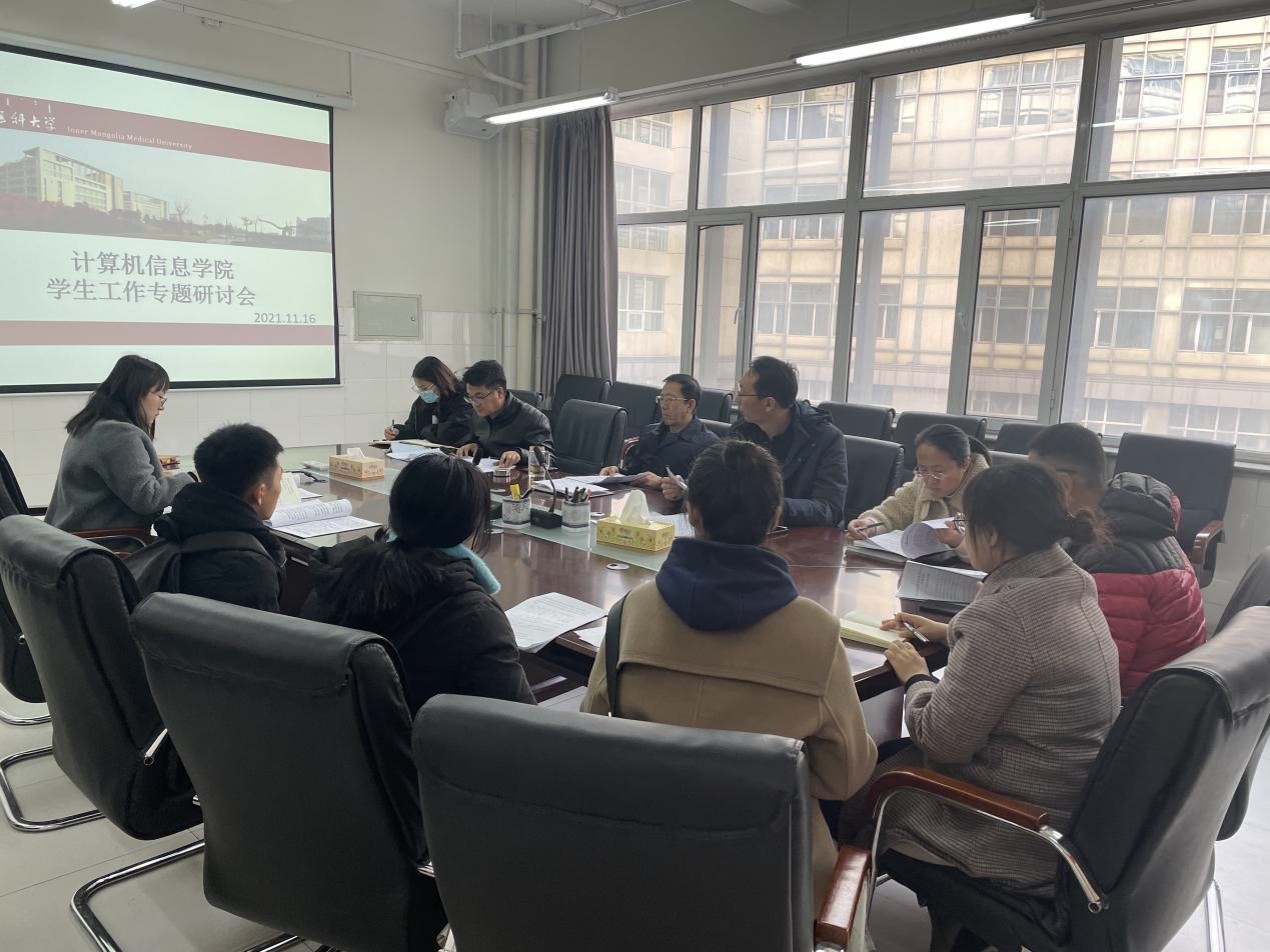 根据学校学生工作部关于修订《内蒙古医科大学本专科学生素质测评办法》《内蒙古医科大学学生德育素质评价办法及实施细则》《内蒙古医科大学学生日常表现量化考评办法》有关通知的要求,计算机信息学院于11月16日上午组织召开了学生工作专题研讨会,对学生工作部下发的征求意见稿进行了专题讨论研究,学院党总支书记李红军、党总支副书记、副院长宁鹏飞、全体辅导员、班主任参加了会议,同时还专门邀请了学生代表参加。