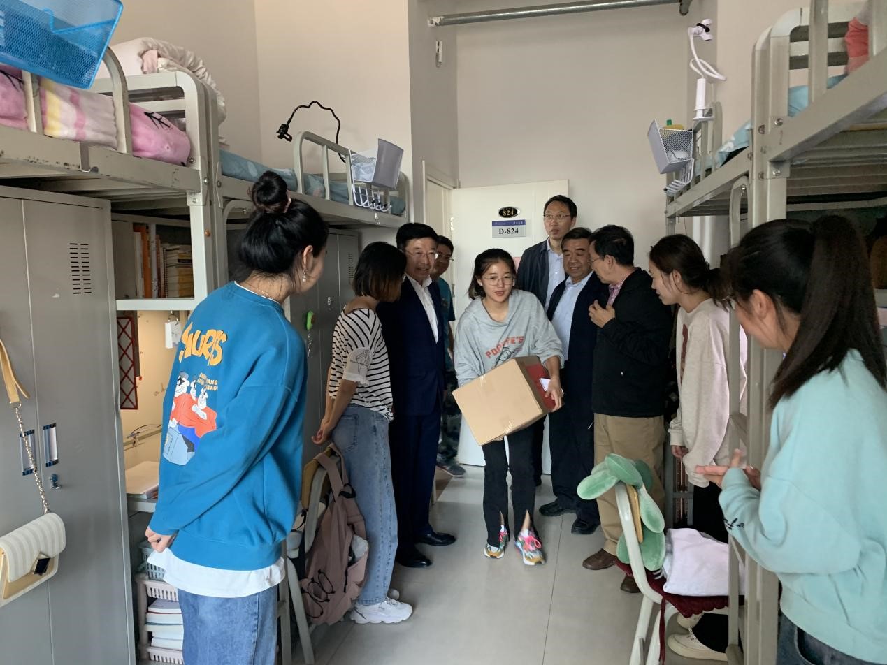 桂香万里月当空,中秋校园情意浓。在中秋节来临之际,计算机信息学院学院认真做好中秋假期疫情防控和留校学生服务保障工作。9月21日下午,学院党总支书记李红军、院长王呼生带领学院领导班子、全体辅导员、班主任一行深入到各班级宿舍送上节日的祝贺,与全体同学们一道欢度中秋佳节。