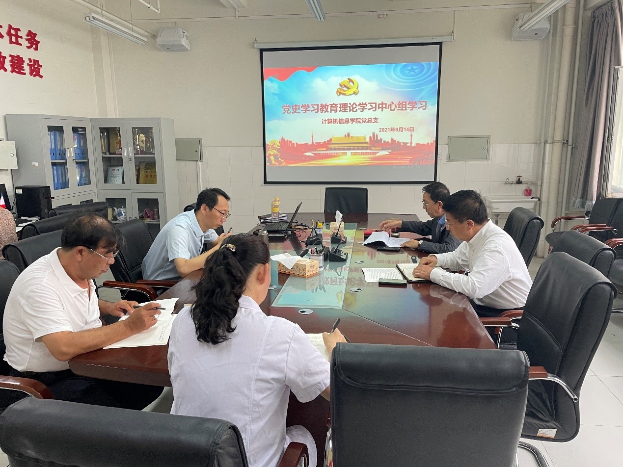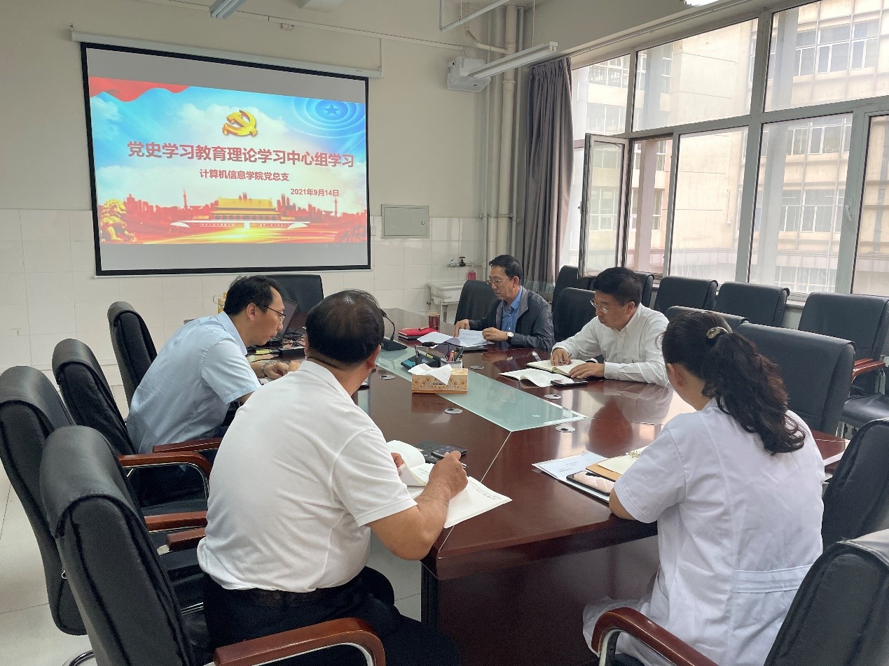 9月14日下午,计算机信息学院党总支于学院会议室组织开展党史学习教育理论学习中心组集中学习活动,由学院党总支书记李红军领学,理论学习中心组成员参加了学习。