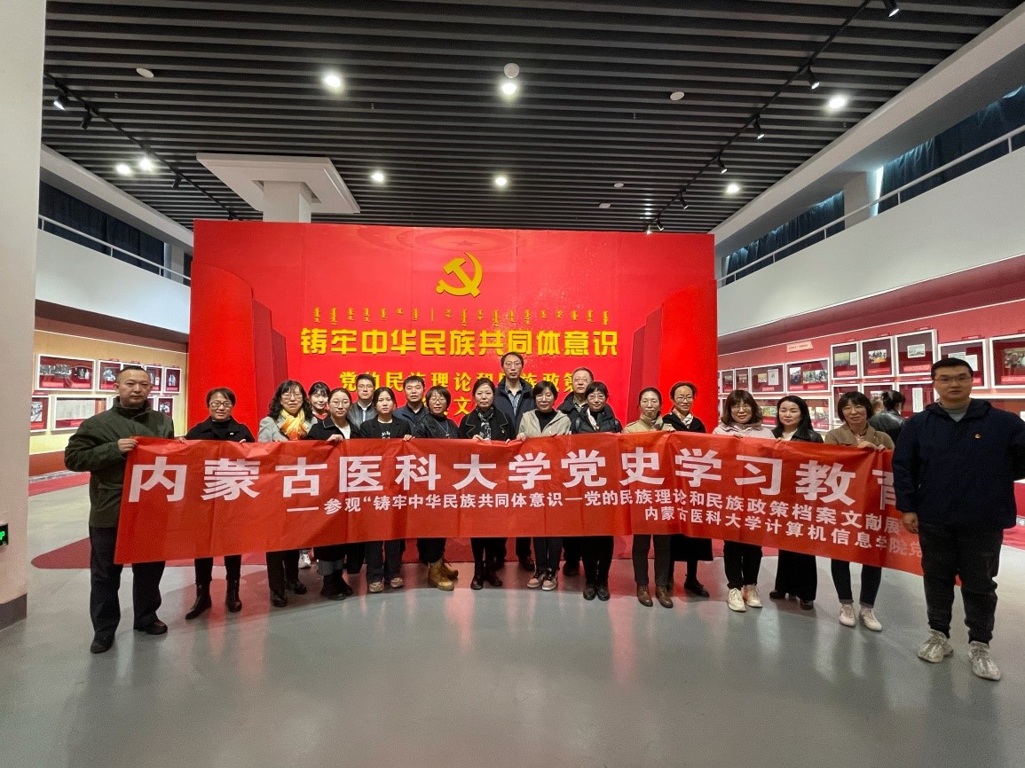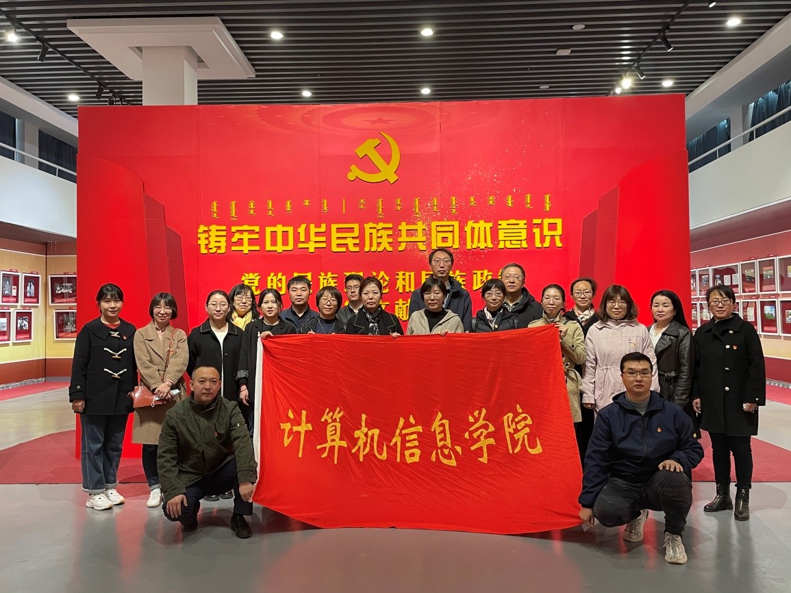 在中国共产党百年华诞的重大时刻,在“两个一百年”奋斗目标历史交汇的关键节点,在全党集中开展党史学习教育之际, 2021年4月16日上午,计算机信息学院党总支组织党员职工参观内蒙古展览馆“铸牢中华民族共同体意识——党的民族理论和民族政策档案文献展”,开展党史学习教育主题党日活动。