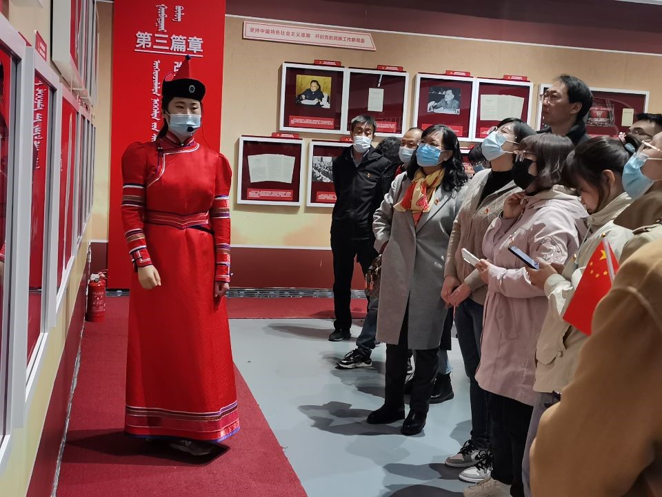展览分为“新中国成立前,新中国成立和社会主义革命、建设时期,改革开放新时期,中国特色社会主义进入新时代”4个篇章。展览全面详实的展示了在中国共产党领导下我国民族工作的发展进程,展示了各个历史时期党中央对少数民族地区各族人民的深切关怀,充分体现了各族人民在中国共产党的坚强领导下,特别是党的十八大以来,深入学习贯彻习近平新时代中国特色社会主义思想,不断铸牢中华民族共同体意识,奋力谱写“中华民族一家亲、同心共筑中国梦”的新篇章。通过现场参观和聆听讲解,全体同志进一步铸牢中华民族共同体意识,加深了对党的民族工作理论和政策的认识,坚定了建设亮丽内蒙古、共圆伟大中国梦的信念。