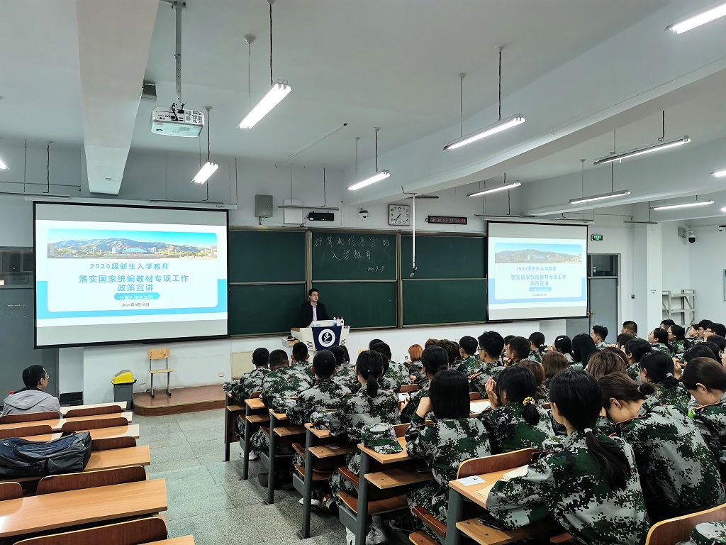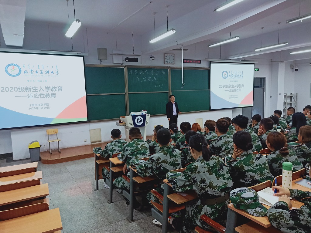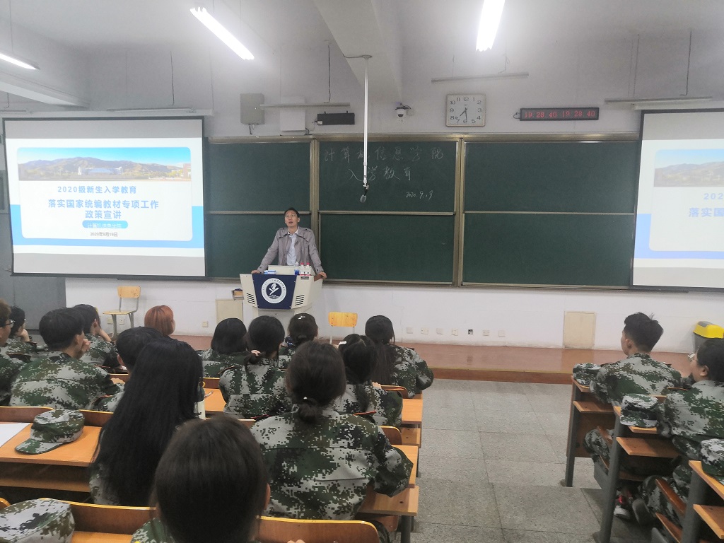 2020年9月19日晚,计算机信息学院在教学楼开展2020级新生入学教育活动。学院党总支副书记、副院长宁鹏飞,学院辅导员刘跃利、2020级全体班主任及2020级新生参加了此次活动。