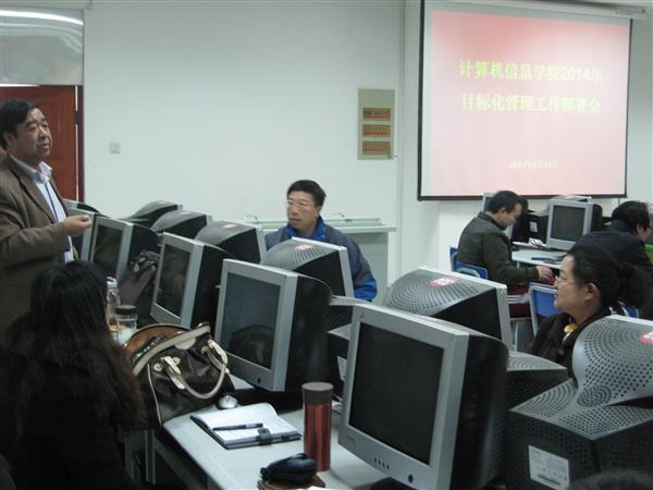 2014年3月13日下午,计算机信息学院在计算机实验中心实验室召开2014年目标化管理工作部署会,学院全体教研室主任,党支部书记参加了会议,学院副院长李宗学同志主持会议。